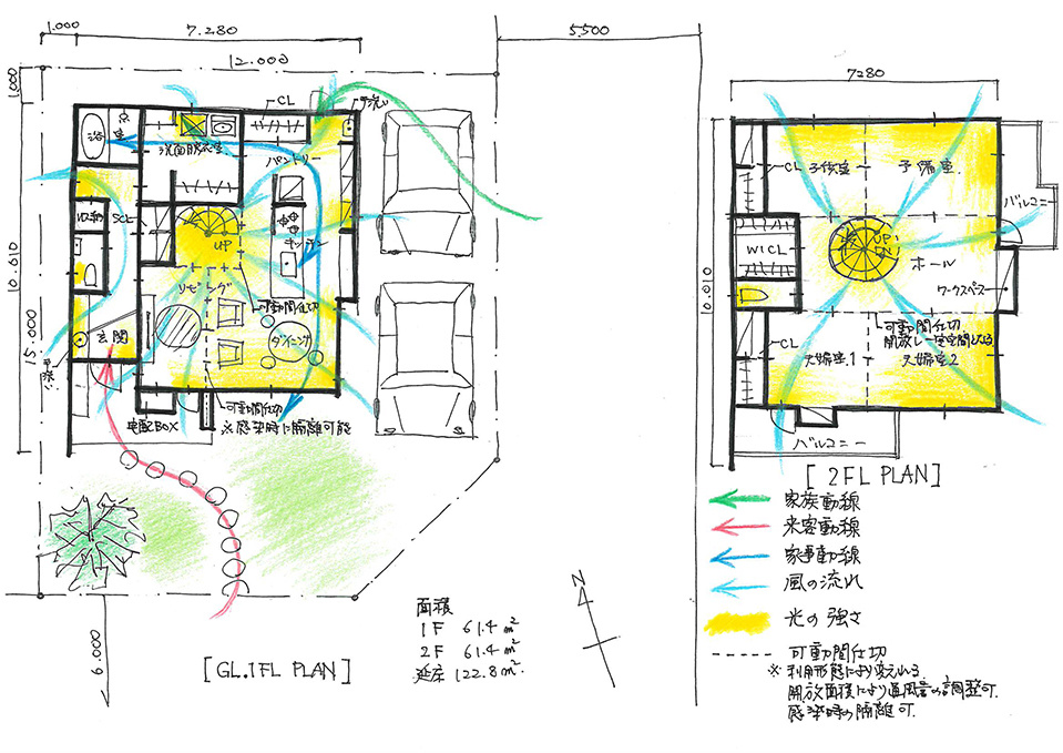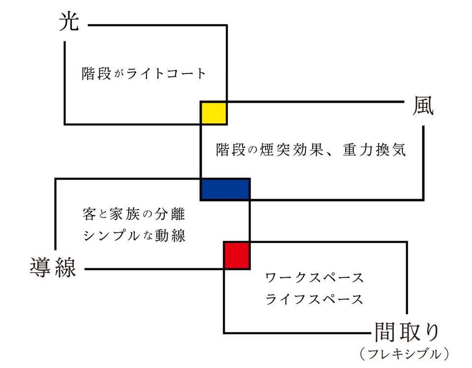 見える線と見えない線意匠的な線はもとより、生活導線や資格・光・風などのLINEをもデザインします。
